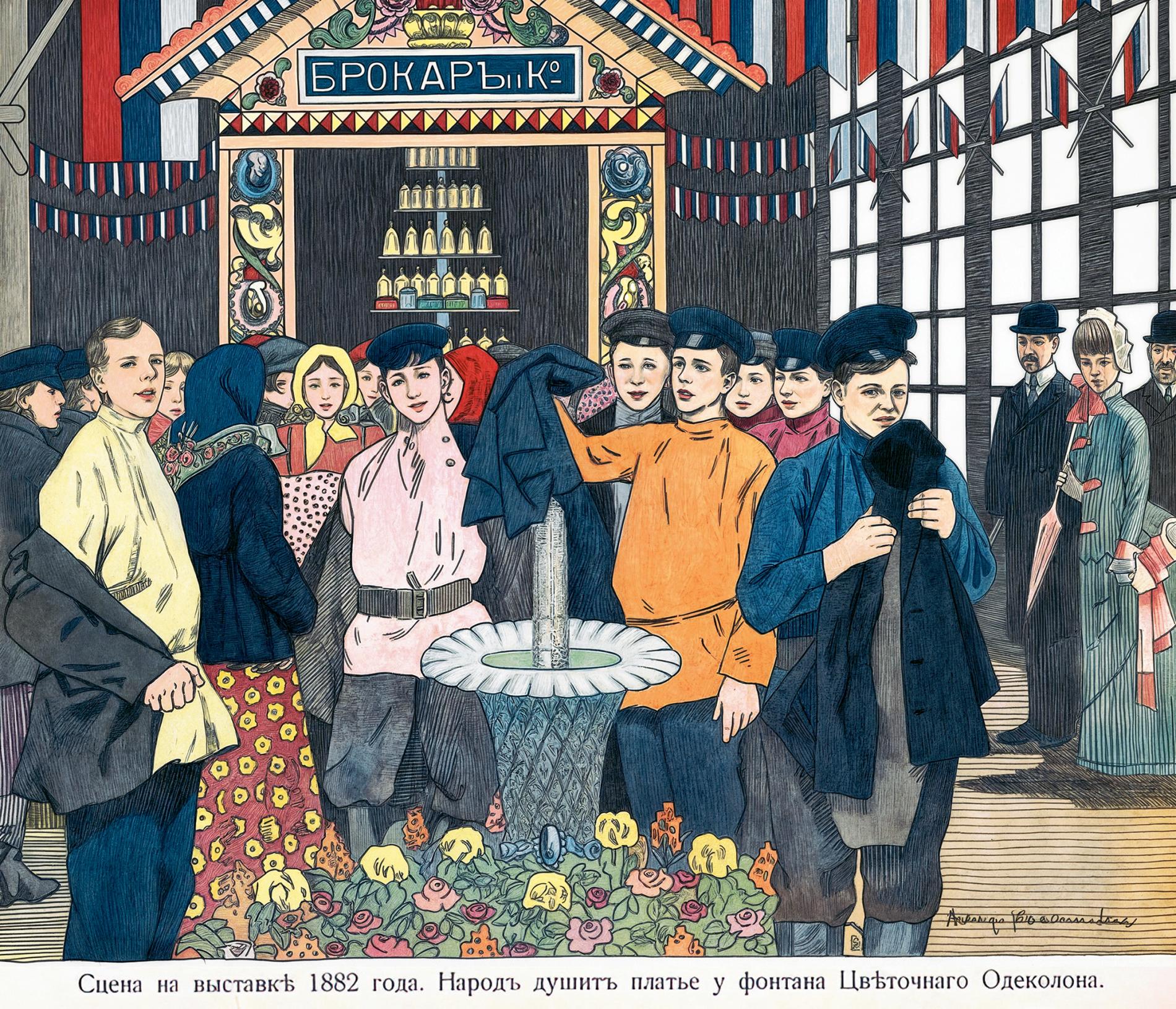 Tad, lūk, līdzīgu gājienu izmantoja Brokāra parfimērijas uzņēmuma dibinātājs Anrī Brokārs, kurš pameta dzimto Franciju, lai uzsāktu smaržu biznesu Krievijas impērijā, kur naudīgi cilvēki bija kā traki uz visu francisko. Sāka ar bērnu ziepēm Brokāra ābece, uz kurām bija iespiesti dažādi burti - šī Brokāra sievas Šarlotes mārketinga ideja izrādījās ļoti veiksmīga. Tad sāka ražot arī citas ziepes, no kurām «ejošākās» bija Tautas ziepes par vienu kapeiku gabalā. 1873. gadā Brokārs biznesu pacēla jaunā līmenī, uzdāvinot cara Aleksandra II meitai Marijai, kura ieradās vizītē Maskavā, no vaska darinātu ziedu pušķi, iesmaržinātu ar Brokāra smaržām. Marijai aromāts patika, un drīz vien tirdzniecībā parādījās smaržas ar nosaukumu Imperatores mīļākie ziedi. Kad Brokāra uzņēmums sāka ražot salīdzinoši lētu odekolonu ar nosaukumu Ziedu odekolons, tad tā reklamēšanai 1882. gada Viskrievijas izstādē uzbūvēja strūklaku, no kuras lija tieši šis odekolons. Izstādes apmeklētāji bija sajūsmā - tā bija lieliska iespēja par velti iesmaržoties ar šo odekolonu. Nekaunīgākie gan drīz vien iemanījās no strūklakas pasmelties ar pudeli, un drīz vien visu pilsētu pārņēma saldenā odekolona smarža...