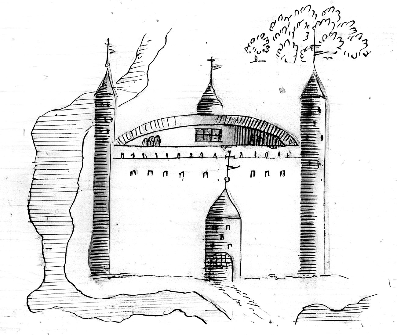 1590. gada revīzijas aktīs teikts, ka pils priekšā (resp., pilsmiestā) atradusies mūra baznīca, ko nopostījuši maskavieši. Jau ticis izdots karaļa rīkojums par jaunas baznīcas būvi vecās vietā un papildu uzturu garīdzniekam. Minēts arī, ka Rēzeknes upē ir nelielas dzirnavas, kur maļ pils vajadzībām.