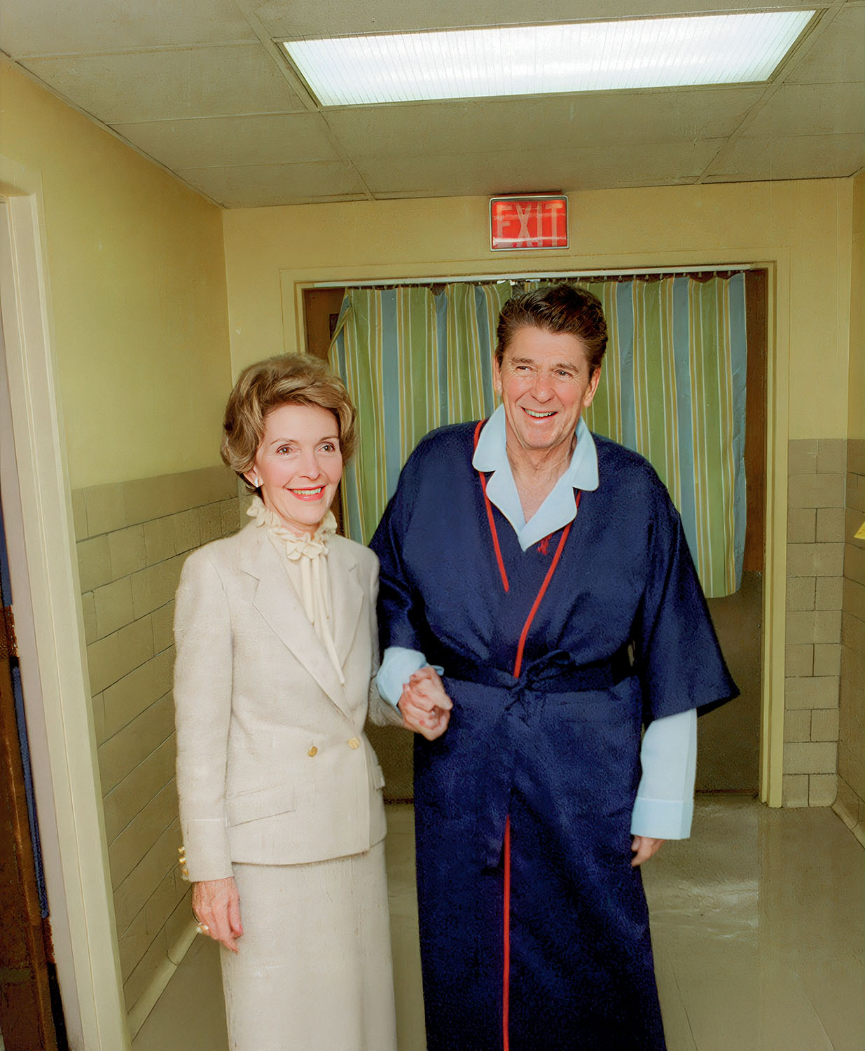 Gadu pēc ievēlēšanas prezidenta amatā, 1981. gada 30. martā, Reigans gandrīz zaudēja dzīvību atentātā, ko pie Hilton viesnīcas Ņujorkā sarīkoja garīgi nenosvērtais Džons Hinklijs, kurš ar šādu gājienu bija iecerējis atstāt iespaidu uz savu sapņu objektu - aktrisi Džodiju Fosteri. Savos memuāros Reigans šādi aprakstīja tās dienas notikumus: «Jau gandrīz piegājis pie automašīnas, es izdzirdēju troksni, kas atgādināja salūtu. Pagriezos un prasīju: «Kas tad tas?» Tajā mirklī apsardzes priekšnieks Džerijs Parrs sagrāba mani aiz rokas un iesvieda automašīnas aizmugurējā sēdeklī. Es nokritu ar seju uz leju, bet viņš uzgāzās man virsū. Sajutu ārkārtīgi asas sāpes muguras augšdaļā. «Džerij, kāp nost, tu esi salauzis man ribu,» es teicu. Džerijs nokomandēja: «Uz Balto namu!» un pēc tam pārcēlās uz priekšējo sēdekli. Es mēģināju apsēsties, taču mani paralizēja sāpes. Iztaisnojies, es noklepojos un ieraudzīju uz plaukstas asinis. «Tu ne tikai salauzi man ribu, bet laikam ietrieci to man plaušās,» es sacīju. Džerijs paskatījās uz asinīm un lika šoferim braukt uz Džordža Vašingtona Universitātes slimnīcu. Tobrīd jau mans kabatlakats bija piesūcies ar asinīm, un viņš man iedeva savējo. Jutu, ka kļūst arvien grūtāk elpot. Nobijos, mani pārņēma panika.