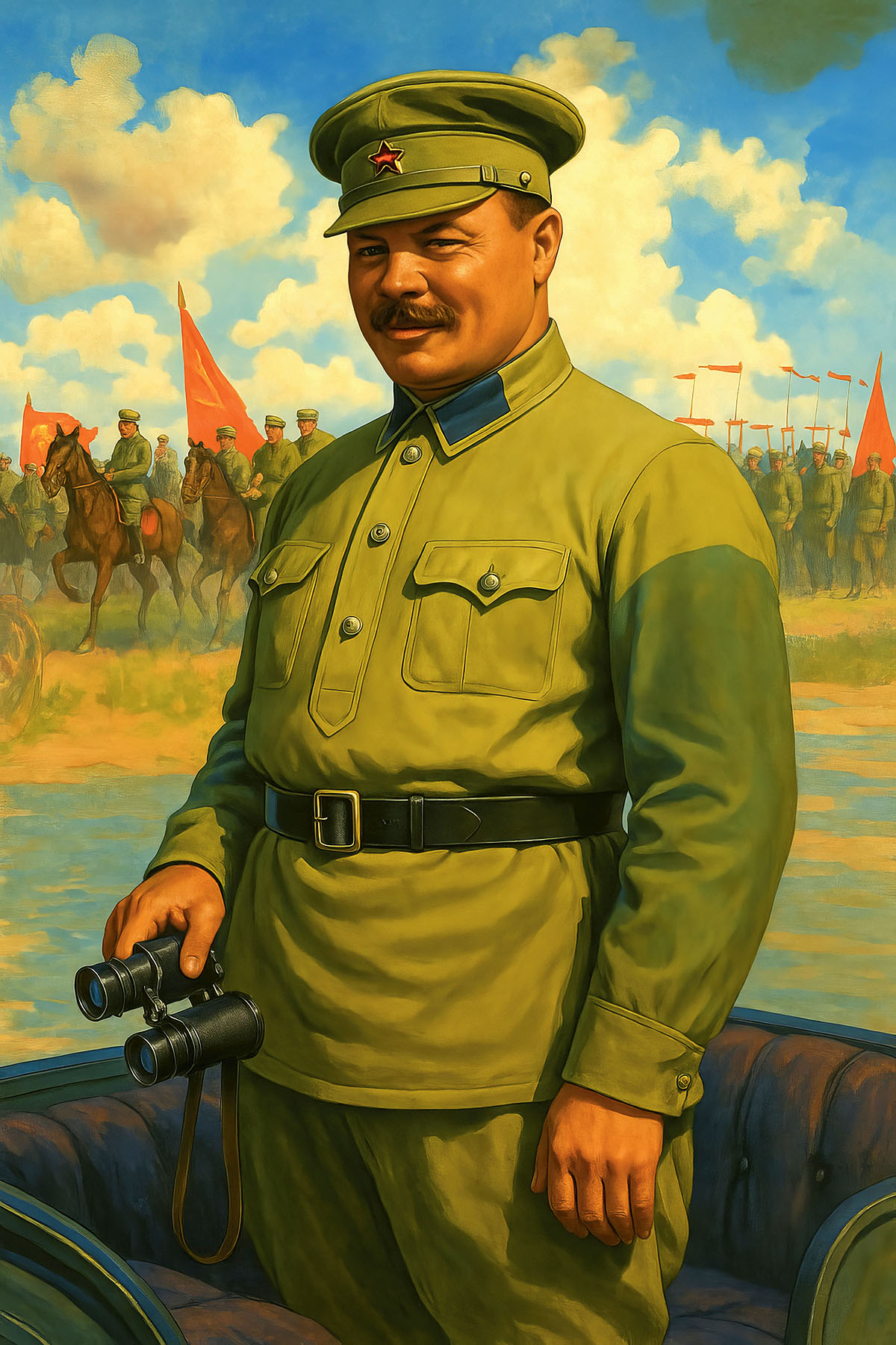 Šādu notikumu scenāriju perspektīvā atbalstīja divdesmito gadu vidū par galveno militāro teorētiķi kļuvušais Sarkanās armijas karavadonis, no 1924. gada Sarkanās armijas Kara revolucionārās padomes priekšsēdētāja vietnieks un tautas aizsardzības komisāra vietnieks Mihails Frunze. Viņa izstrādāta padomju militārā doktrīna tobrīd jau bija nomainījusi nežēlastībā kritušā Ļeva Trocka idejas par padomju militārā potenciāla izmatošanu pārsvarā aizsardzības nolūkos, militāru uzbrukumu kā pasaules revolūcijas izraisītāju izmantojot tikai galējas vajadzības gadījumā. Frunzes teorētiskās atziņas vienā teikumā varētu izteikt šādi - uzbrukums ir vislabākā aizsardzība. Viņš uzskatīja, ka turpmākās militārās sadursmes jeb nākotnes kari būs tikai šķiru kari - vienkārši kā viena no proletariāta cīņas par pasaules komunistisko pārveidošanu sastāvdaļām. Un šajā cīņā ir jābalstās uz uzbrukumu, nevis uz pasīvu aizsardzību. Trīsdesmitajos gados tobrīd jau aizdomīgos apstākļos mirušais Frunze un viņa teorētiskais mantojums bija kanonizēts, un viņš tika iecelts «ievērojama marksistiskās karamākslas teorētiķa» statusā. Tas kļuva iespējams tikai tādēļ, ka Frunzes idejām piekrita «visu laiku lielākais militārais ģēnijs un karavadonis» Josifs Staļins. Vēl 1924. gadā izdotajā darbā Ļeņinisma pamati Staļins bija izteicis domu, ka proletariāta diktatūras rīcībā esošā armija ir ierocis strādnieku atbrīvošanā.