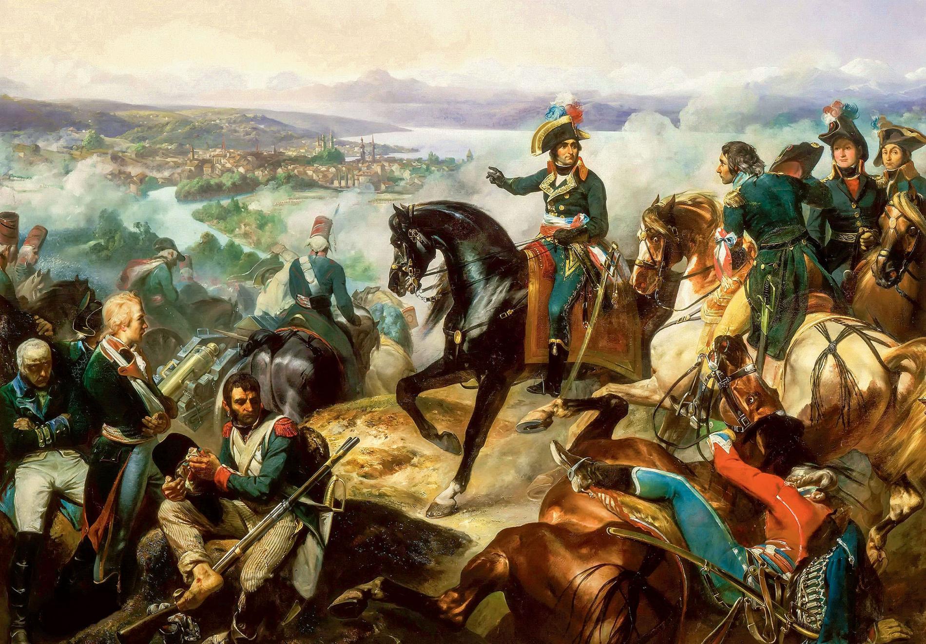 1798. gads: revolucionārās Francijas armija iekaro Šveici un kopā ar vietējiem atbalstītājiem pārvērš to par marionešu valsti - unitāru Helvētijas Republiku. Okupanti Šveices bankās piesavinās milzu finanšu līdzekļus. Pēc pieciem gadiem Napoleons, rēķinoties ar šveiciešu iekšējām nesaskaņām, atjauno kantonu federāciju. Daļa Šveices frančvalodīgo zemju, ieskaitot Ženēvu, pievieno viņa impērijai. Valstī pirmo reizi tiek izveidota nacionālā armija. Šveices karavīri zem franču karogiem varonīgi cīnās Spānijā un Krievijā.