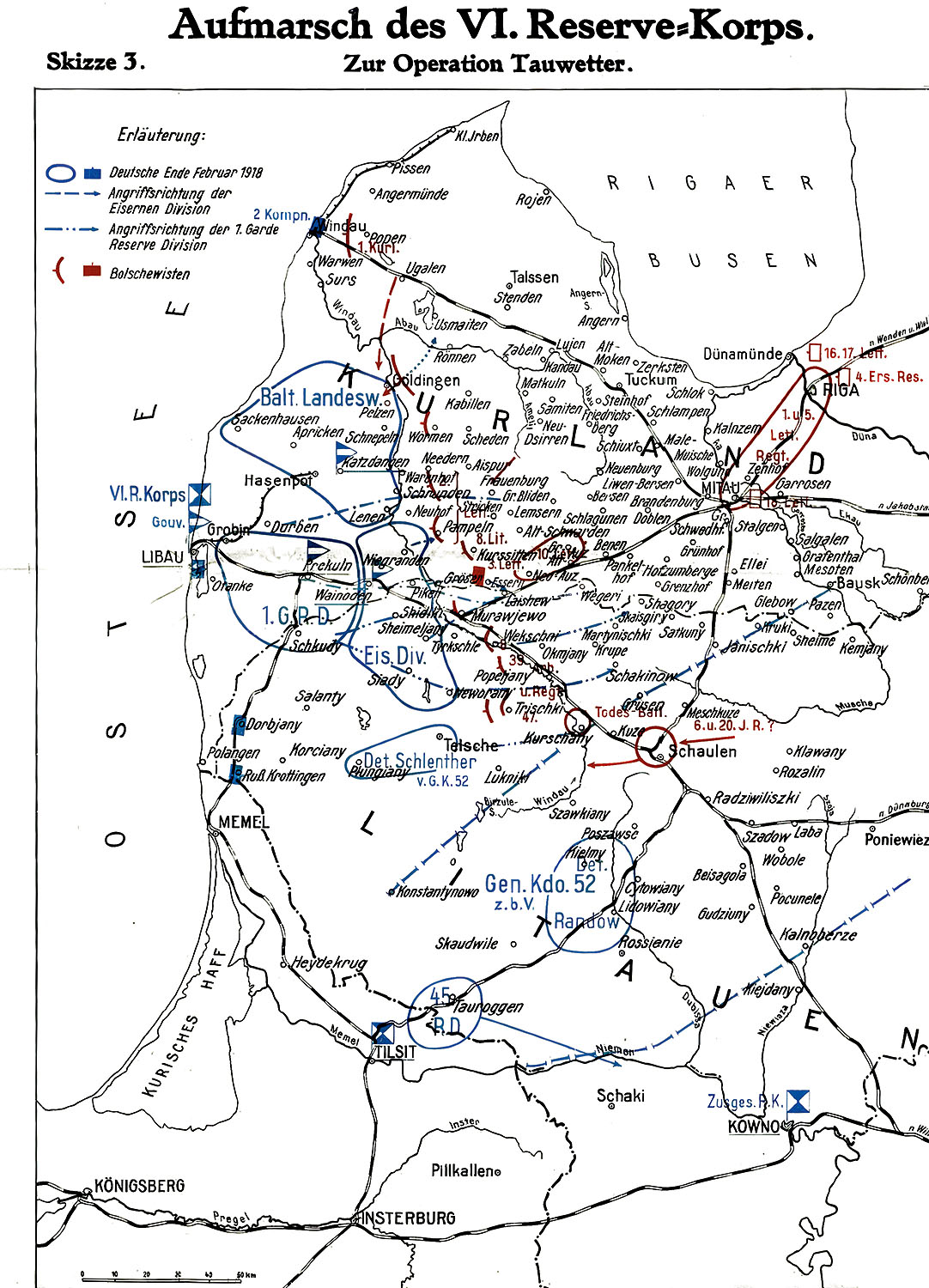 Jāpiemin pieredzējušā vācu ģenerāļa Rīdigera fon der Golca ierašanās Liepājā 1. februārī. Viņam aiz muguras jau bija Pirmā pasaules kara pieredze, kā arī vācu daļu komandēšana Somijā. 1918. gada aprīļa sākumā tās nosūtīja uz Somiju, kuras valdība Pilsoņu karā cīņai pret sarkanajiem gvardiem lūdza Vācijas militāro palīdzību. 3. aprīlī vācieši izsēdās Hanko pussalā, ātri atbrīvoja Helsinkus no sarkanajiem un līdz mēneša beigām nodrošināja Somijas neatkarību. Divīzija līdz 30. maijam Somiju atstāja, bet Golcs tur vēl kādu laiku palika kā Vācijas valdības pārstāvis.