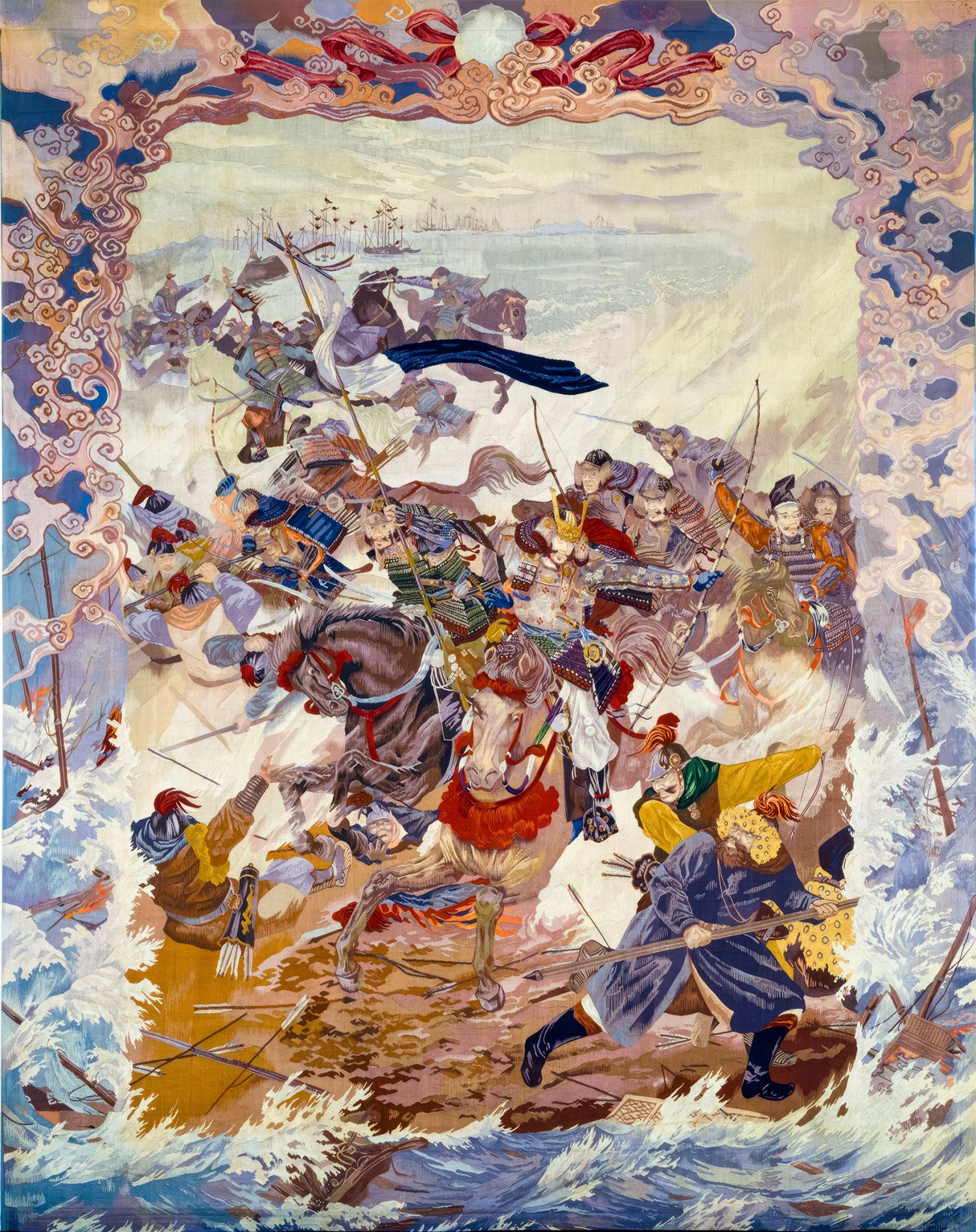 Juaņu impērija, uzbūvējot lielu floti, neveiksmīgi cenšas ar 30 tūkstošiem karavīru iebrukt Japānā. Otrreiz mongoļi to mēģina 1281. gadā, 900 kuģos sapulcinot 100 tūkstošus vīru; šo vērienu pārsniedz tikai 1944. gada operācija Overlord - sabiedroto izcelšanās Normandijā. Iekarotāji, kam nav pieredzes jūras kaujās, tiek sakauti. Japāņu sabiedrotie ir postošie taifūni - rodas mīts par debesu sūtītiem kamikadzēm jeb dievišķiem vējiem salu valsts aizstāvībai.