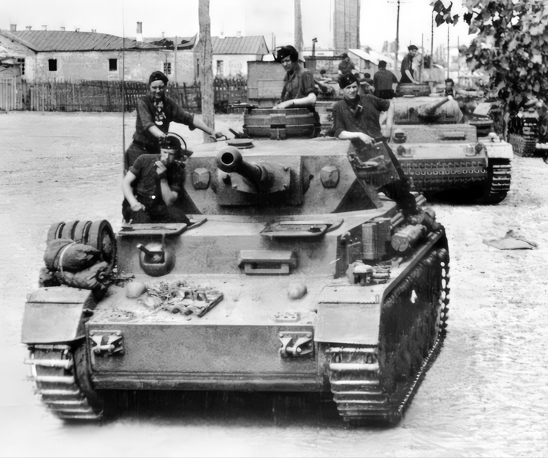 Lūk, kā viņš to apraksta: «Sitiens pa tanku, metāliska šņirkstoņa, biedra sāpju kliedziens - un viss! Liels bruņu gabals bija ietriekts iekšā blakus radista vietai. Mums nevajadzēja nekādu pavēli, lai mestos laukā no tanka. Tikai tad, kad, seju saķēris, es atrados blakus esošajā grāvī, attapos, ka arī esmu cietis. Mūsu radists zaudēja kreiso roku. Mēs nolādējām trauslo un neelastīgo čehu tēraudu, kas neapturēja krievu 45 mm lielgabala šāviņu. Mūsu pašu bruņu plātņu atlūzas un stiprinājuma skrūves nodarīja vairāk posta nekā šķembas un pats šāviņš. Mani izsistie zobi palika medpunkta atkritumu spainī. Sīkās šķembas, kas bija ietriekušās man sejā, tur palika līdz nākamās dienas rītausmai un tad pašas iznāca ārā, kā jau bija solījuši mediķi.»
