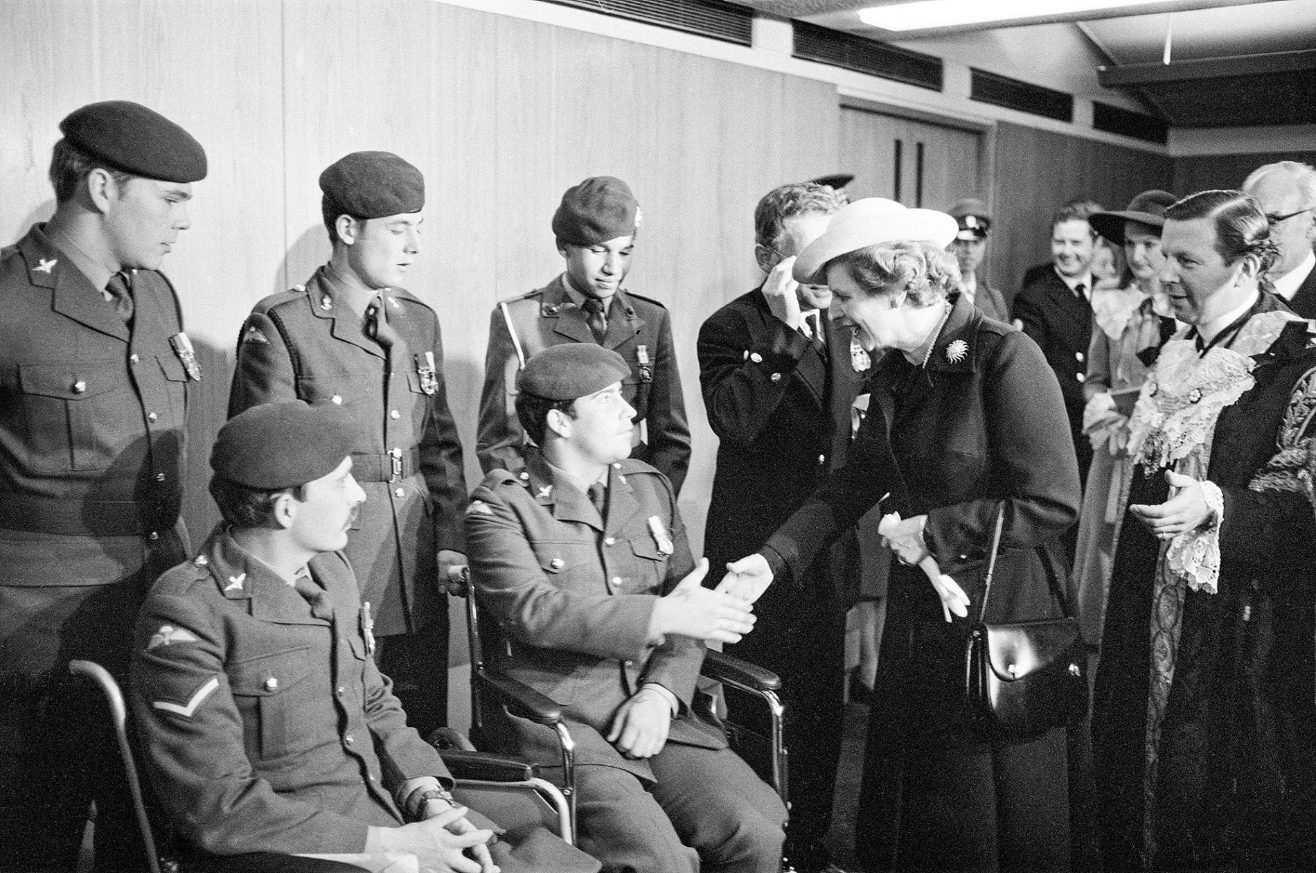 Piepeši vairums britu, kuri vēl nesen bija lamājuši Tečeri pēdējiem vārdiem, kļuva par kvēliem patriotiem un bija gatavi sūtīt savu armiju karā uz tālajām Folklendām. Tečere, līdzīgi kā savulaik Čērčils, izveidoja Kara kabinetu, kur ikdienas sēdēs tika plānota salu atbrīvošanas operācija. Uz Folklendu rajonu nosūtīja apmēram 100 kuģus, 40 kara lidmašīnas un 26 000 karavīru, kas izmaksāja iespaidīgas summas. Taču Folklendu atgūšana bija principa jautājums, un tā vārdā valdība bija gatava aizmirst taupības režīmu.