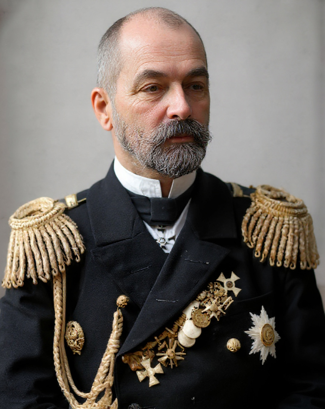 Pēc tam es prožektoru staros priekšā un pa labi, tikai daudz tuvāk, pamanīju nelielu kuģīti ar vienu mastu un skursteni - pēc visa spriežot, tas nupat bija šķērsojis eskadras kursu un tagad nesteidzīgi attālinājās. Vēl viens tāds pats nāca teju vai virsū bruņukuģim Aleksandrs III, kas to apbēra ar šāviņu krusu. [Vēlāk noskaidrojās, ka šis tvaikonītis jau bija sašauts un zaudējis vadību, tāpēc tika nests virsū Aleksandram III.] Šis kuģītis nogrima manu acu priekšā. Trešais tāds pats lēnām kuģoja tieši mums deguna priekšā. To ieraudzījis, kreisā 47 mm lielgabala komendors izšāva vairākus šāvienus, taču pats admirālis viņu sagrāba aiz pleca un dusmīgi uzbļāva: «Ko tu atļaujies! Bez pavēles! Vai tad neredzi, ka tie ir zvejnieki!?»