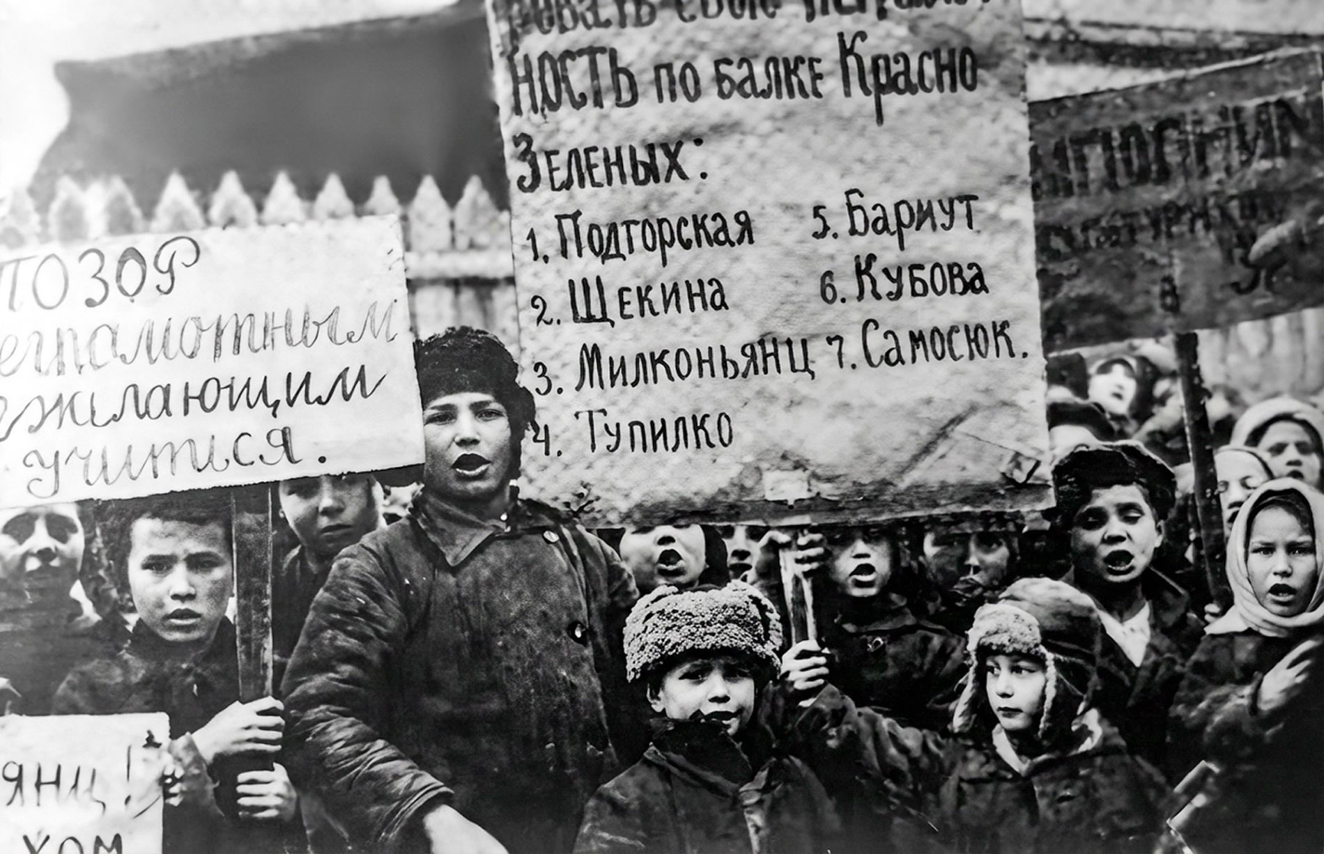 Boļševiku valdības tautas izglītības komisārs Anatolijs Lunačarskis jau 1918. gadā pavēlēja likvidēt vēsturi kā mācību priekšmetu, bet tās elementus iekļaut apvienotā humanitāro un sociālo mācību priekšmetā - sabiedrības mācībā. Integrētā priekšmeta uzdevums bija veidot marksistisku pasaules redzējumu, visu sabiedrību vērtēt no šķiriskuma un marksistiskās dialektikas pozīcijām.