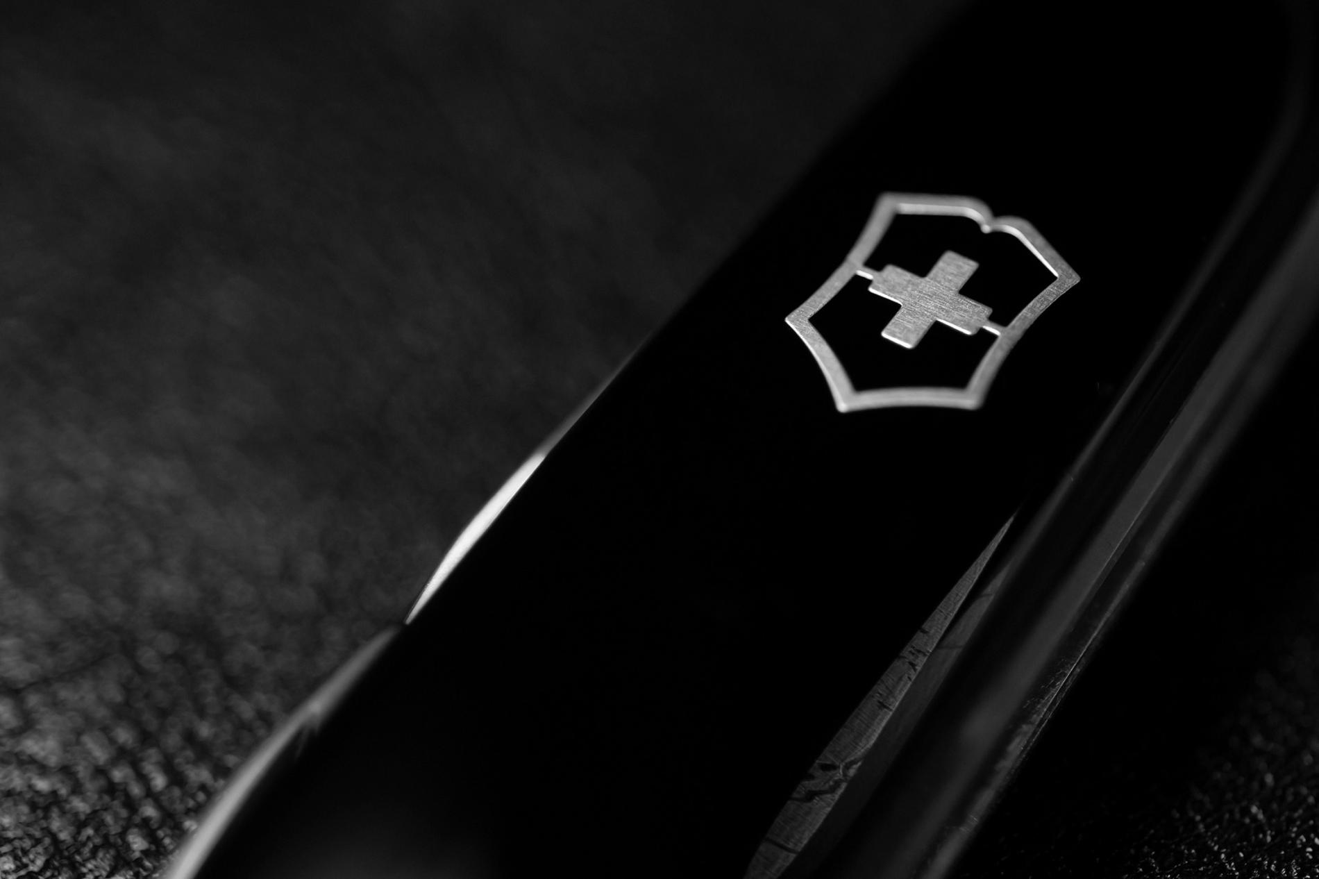 Krusts vairoga ietvarā - Šveices ģerboņa stilizācija - uz Elzenera ražojumiem parādījās 1909. gadā. Togad nomira viņa māte Viktorija, kurai par godu tika nosaukts uzņēmums. Vēlāk, 1921. gadā, ražošanā pārejot uz nerūsējošo tēraudu, rodas zīmols Victorinox (franciski - Victoria + acier inoxydable jeb Viktorija/uzvara + nerūsējošais tērauds). Par uzņēmuma oficiālo nosaukumu tas kļuva vien 1979. gadā. Tērauds sakausējumam, kura sastāvs ir komercnoslēpums, tiek piegādāts no Vācijas un Francijas.