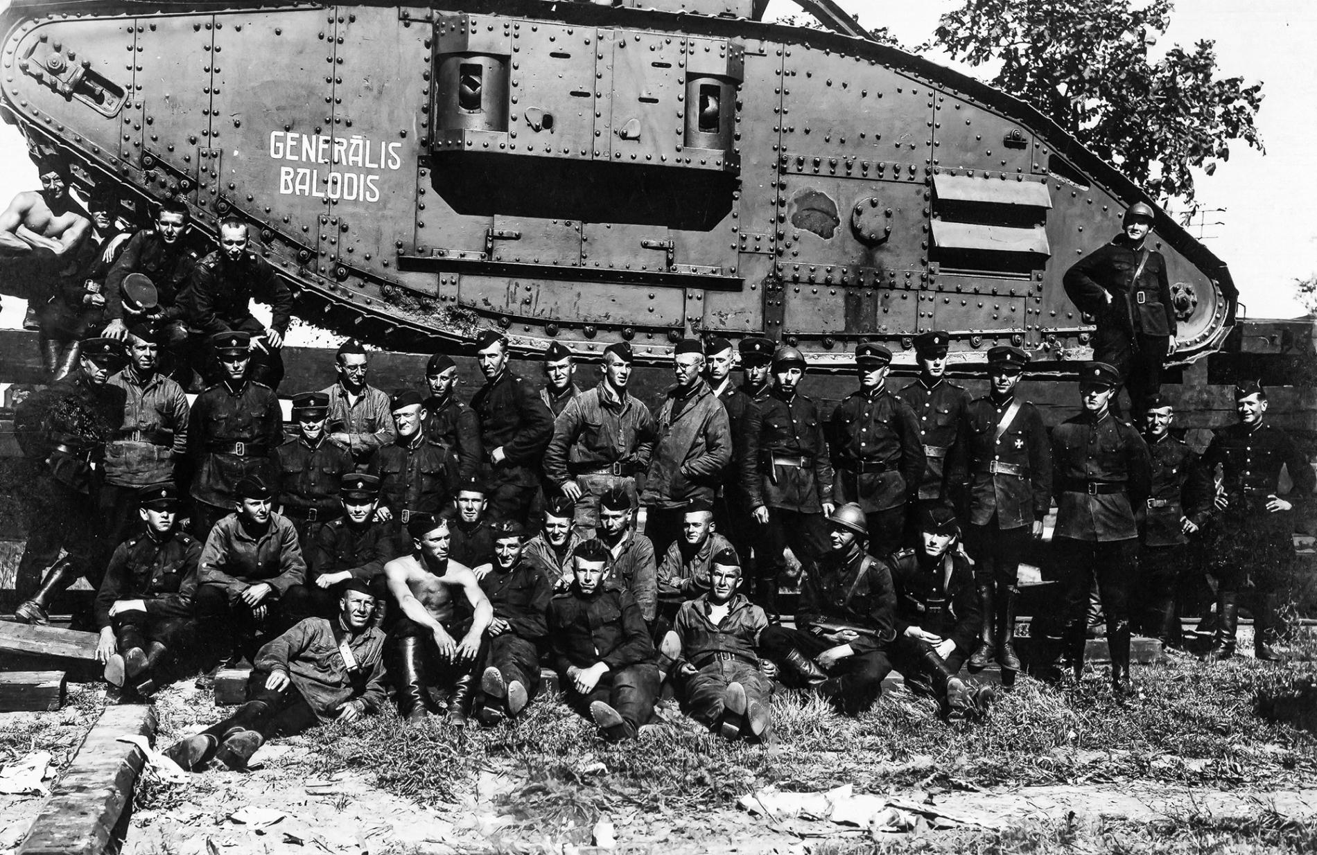 Pirmās bruņotās kaujas tehnikas vienības Latvijas armijā parādījās Latvijas Neatkarības kara laikā (1918-1920). 1919. gada 10. jūlijā, apvienojoties 1. Latviešu atsevišķajai brigādei (jeb Dienvidlatvijas armijas grupai) un Ziemeļlatvijas brigādei, bija sākta vienotas Latvijas armijas organizācijas un apgādes sistēmas veidošana. Latvijas armijas pirmo bruņutanku vienību sāka veidot 1919. gada 10. jūlijā pēc Dienvidlatvijas armijas grupas (vēlākās Kurzemes kājnieku divīzijas) komandiera pulkveža Jāņa Baloža pavēles, šo vienību nosauca par 1. Bruņoto divizionu. Kā bruņojumu šajā grupā ieskaitīja pēc Cēsu kaujām (1919. gada jūnija beigās) latviešu karaspēka rīcībā trofeju veidā nonākušos vairākus bruņotos automobiļus un bruņoto vilcienu. Līdz 1919. gada oktobra sākumam bija paredzēts saformēt trīs bruņoto automobiļu nodaļas, taču izdevās izveidot tikai divas. Diviziona rīcībā bija pieci bruņotie automobiļi, kuriem visiem bija doti individuāli nosaukumi: divi Garford tipa smagie bruņotie automobiļi Lāčplēsis un Kurzemnieks, viens Sheffield-Simplex tipa bruņotais automobilis Imanta, viens Austin tipa bruņotais automobilis Zemgalietis un Fiat tipa auto Staburags. Diemžēl nav zināms, kā un kādēļ tika izvēlēti šo bruņumašīnu nosaukumi.