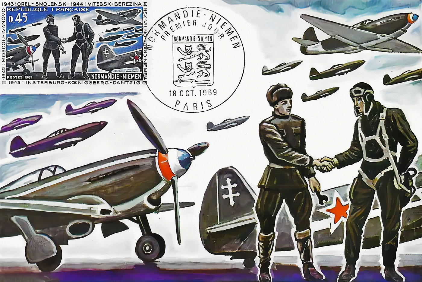Pēc kara Staļins, atzīmējot franču nopelnus, ļāva Normandijai pilnā sastāvā doties uz Franciju, paturot arī lidmašīnas. 1945. gada 15. jūnijā 40 Jak-3 iznīcinātāji pacēlās gaisā Austrumprūsijā un devās uz rietumiem. Pēc trim apstāšanās reizēm atpūtai un degvielas uzpildīšanai pulks Normandija sasniedza Leburžē lidlauku Parīzes pievārtē, kas turpmāk būs tā mājvieta. Tobrīd gan sarkanās zvaigznes uz lidmašīnu korpusiem bija nomainījuši Lotringas krusti.